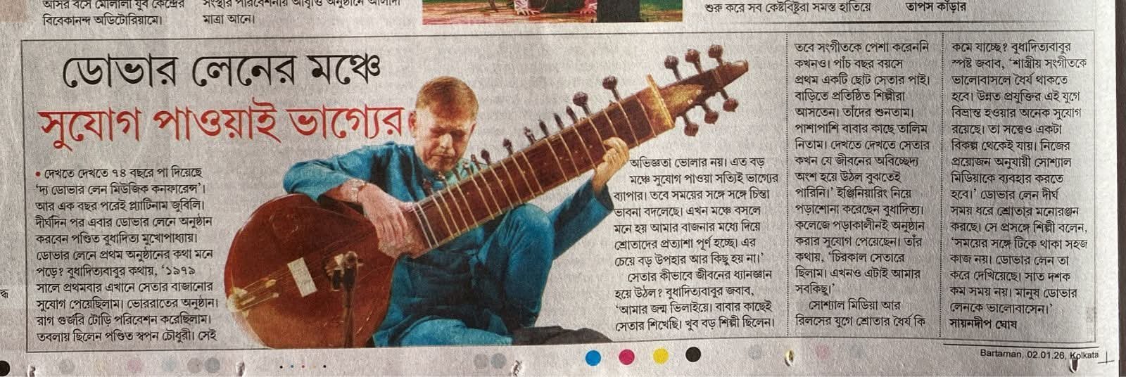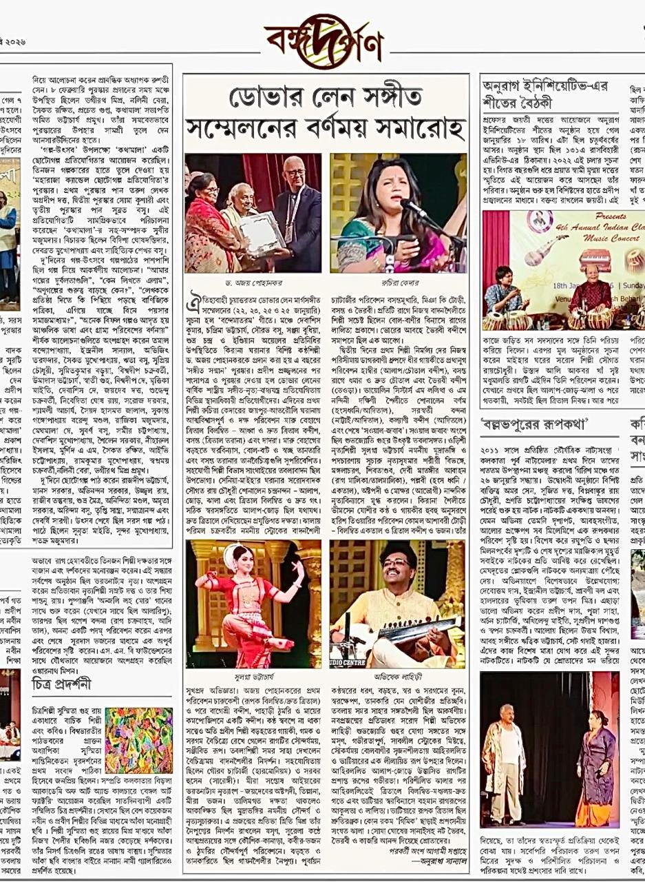 Dover Lane Music Conference Experience – Bartaman Patrika → Dover Lane review in Dainik Statesman → The Telegraph : 20th February 2021 → Bartaman : 26th February 2021 → Patrika (Anandabazar) : 27th February 2021 → Desh : 2nd March 2021 → Times of India : 19th December,2024 → 73rd Annual Dover Lane Music Conference Press release →